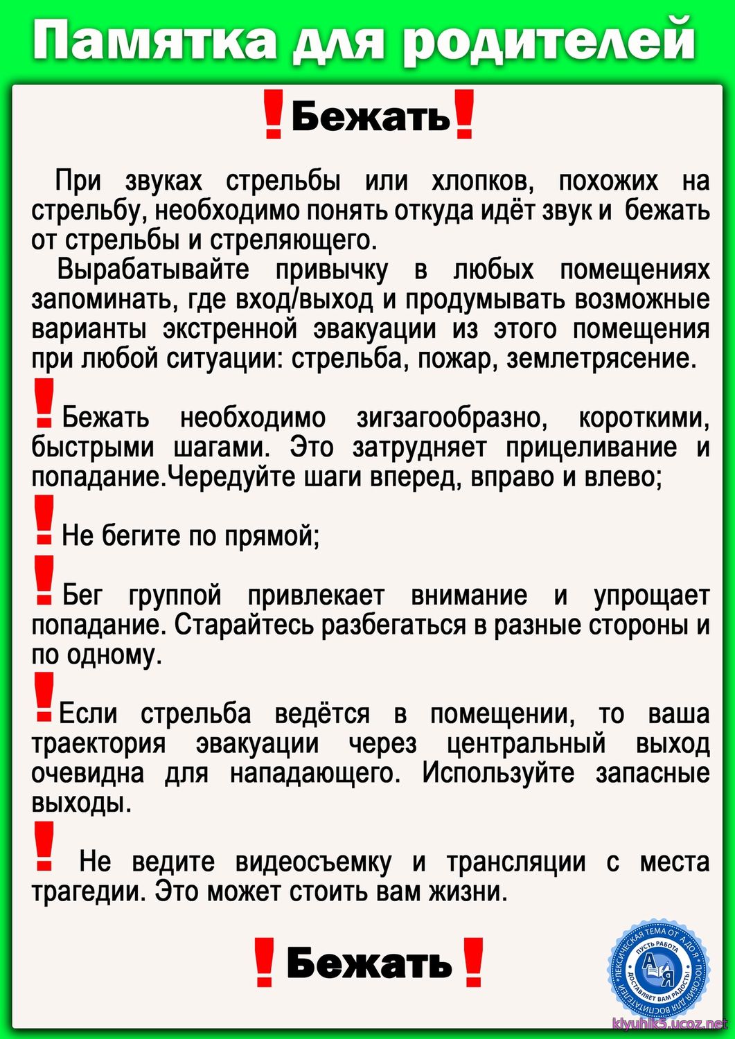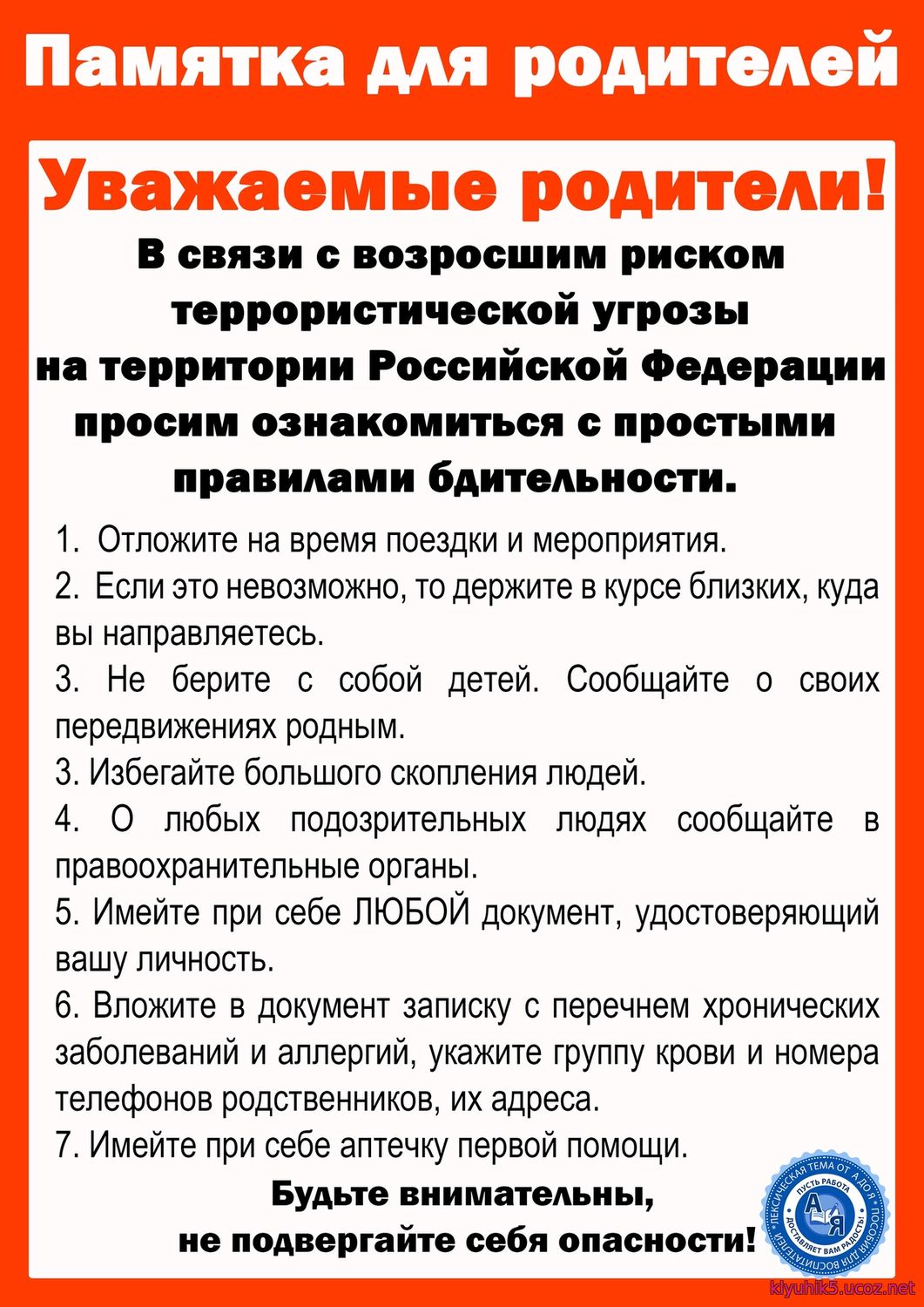 Памятка "Правила антитерраристической безопасности"